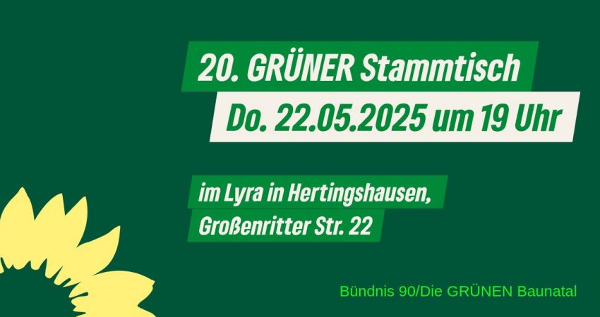 Gerne diskutieren wir mit Euch darüber. Wir freuen uns auf interessante und spannende Gespräche und Anregungen zu GRÜNER Politik für die Stadt Baunatal, in der Stavo, im Kreistag, im kommenden Kommunal-Wahlkampf und selbstverständlich auch im Landtag. Welche Themen sind Eure Themen?