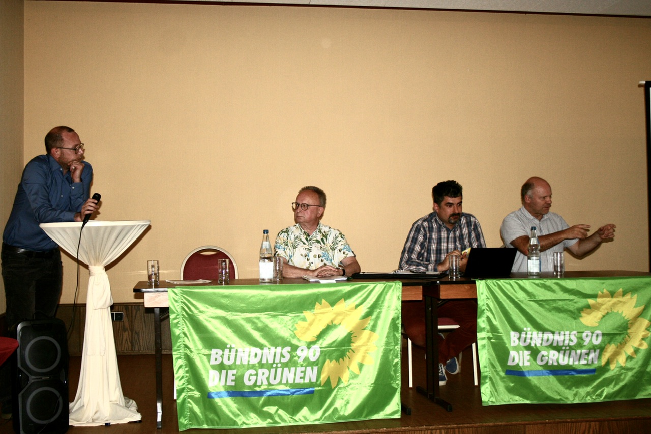 Danach leitete Juri Stölzner, seines Zeichens Vorstandssprecher der GRÜNEN im Landkreis Kassel und Mitglied im OV Baunatal, welcher die Moderation des Abends übernahm, an den ersten Gastredner Prof. Dr.-Ing. Uwe Altrock weiter. Er ist Dekan der Uni Kassel, im Fachbereich Architektur mit dem Schwerpunkt Stadterneuerung und Planungstheorie. Sein hochinteressanter Fachvortrag umspannte Themen diverser Möglichkeiten einer moderaten und verträglichen Nachverdichtung mit Beispielen von Innenstadtentwicklung statt Siedlungsneubau. Er zeigte auch generell auf, welche gesamtgesellschaftlichen Aspekte, z.B. demografische, beim Re-urbanisieren von Ballungszentren und Leben in den sogenannten Speckgürteln gerade hinsichtlich der Veränderung von Wohnflächenkonsum mit steigendem Alter berücksichtigt werden müssen. D.h. derzeitig werden pro Person ca. 45 qm Wohnfläche verbraucht, wobei dieser Konsum, statistisch belegt, mit steigendem Lebensalter sich gegenüber dem eines Kindes vervielfacht. Viele Menschen bewohnen im Alter alleine große Häuser und Grundstücke. Weswegen sein erstes Fazit lautete: Vielfältige, individuelle Unterstützung für Neuverwendung, nachhaltige Sanierung und Modernisierung, Aufstockung, Innenverdichtung durch Grundstücksaufteilungen usw. sollen dazu führen, vorhandene, also bereits verbrauchte, Flächen effektiver für größere Bevölkerungsteile zu nutzen.