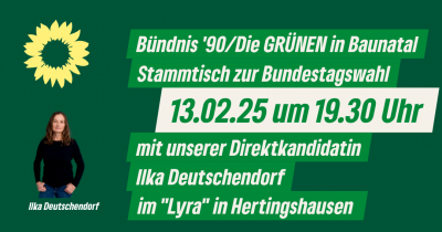 Bei frostigen Temperaturen eröffneten die GRÜNEN Baunatal in der Ortsmitte von Großenritte den Straßenwahlkampf zur bevorstehenden Bundestagswahl im Februar 2025. Interessante aber auch schwierige Gespräche begleiteten die 5 Wahlkämpfer:innen bei…