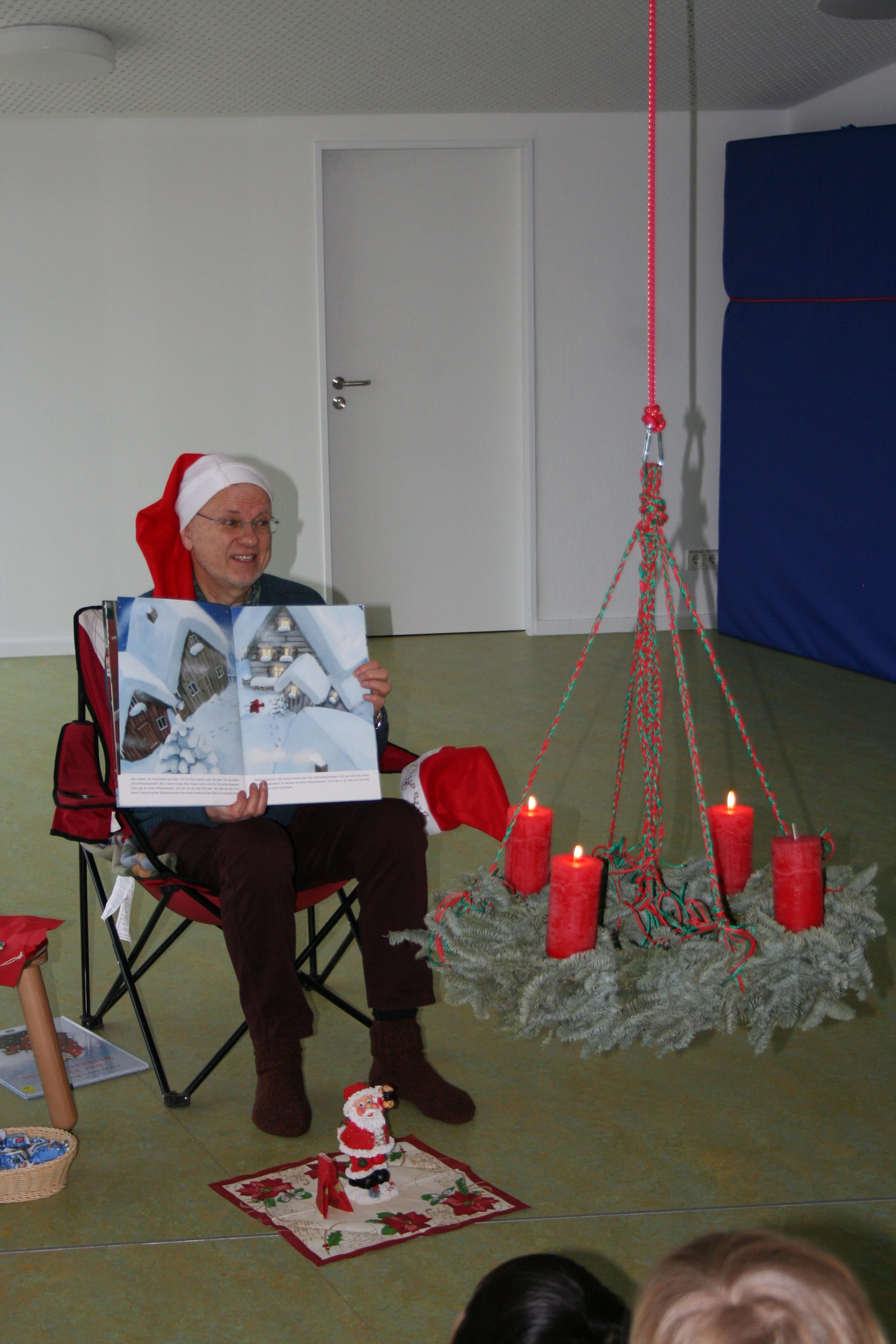 14 aufmerksame Zuhörer folgen der Weihnachtsmanngeschichte