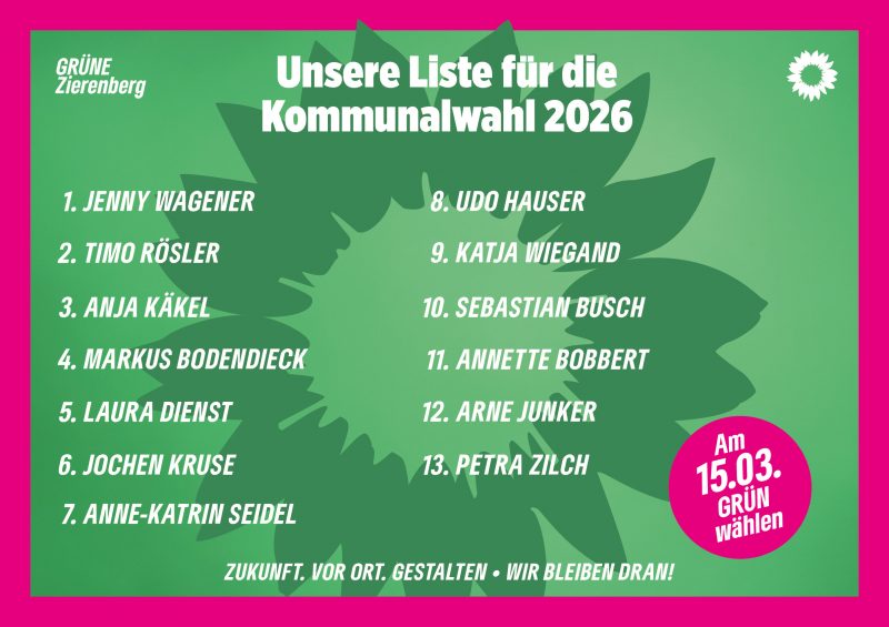 Zwei Jahre nach Gründung eines Ortsverbands in Zierenberg ist es an der Zeit einmal Bilanz zu ziehen, was wir als Grüne und neue Fraktion in der Kommune bislang erreichen konnten….